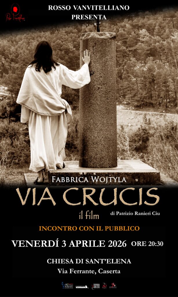 Per l’azione di riqualificazione culturale territoriale di Rosso Vanvitelliano, si apre il primo percorso artistico di aperture straordinarie delle chiese del centro cittadino Wojtyla come attrattiva turistica di natura spirituale. Venerdì 3 aprile alle ore 20:30, nella Chiesa di Sant’Elena a Caserta (via Ferrante), ci sarà la proiezione con incontro-dibattito della “Via Crucis”, il film evento fuori Stagione Artistica di Fabbrica Wojtyla, con la partecipazione diocesana a cura di Don Domenico Pontillo.