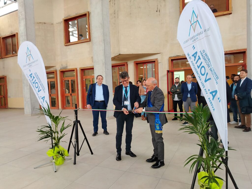 Aversa (Caserta) – È stata inaugurata questa mattina, presso la sede dell’ISIS “A. Volta” in viale dell’Archeologia ad Aversa, la nuova struttura polifunzionale realizzata dalla Provincia di Caserta. Al taglio del nastro, insieme al presidente della Provincia, Anacleto Colombiano, era presente il dirigente scolastico dell’istituto, Michele Di Tommaso.
