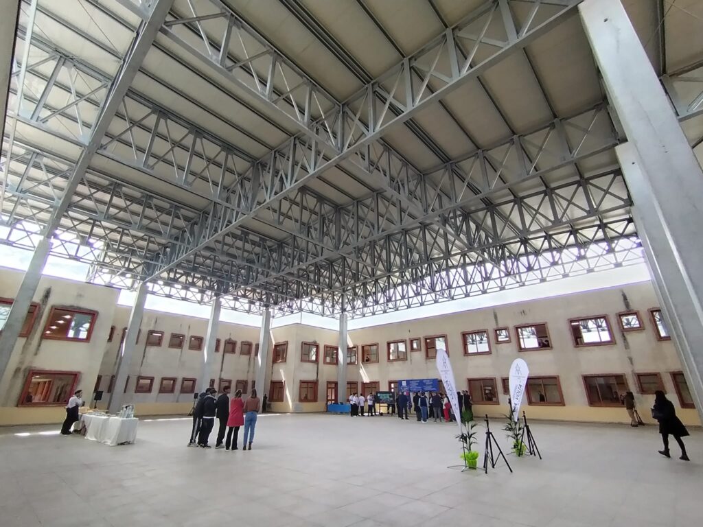 La corte interna, di circa 900 mq, è stata trasformata in uno spazio coperto e pienamente fruibile grazie a una struttura all’avanguardia in cemento e acciaio, sormontata da pannelli fotovoltaici. L’area è destinata ad attività didattiche, momenti di socialità ed eventi extrascolastici.