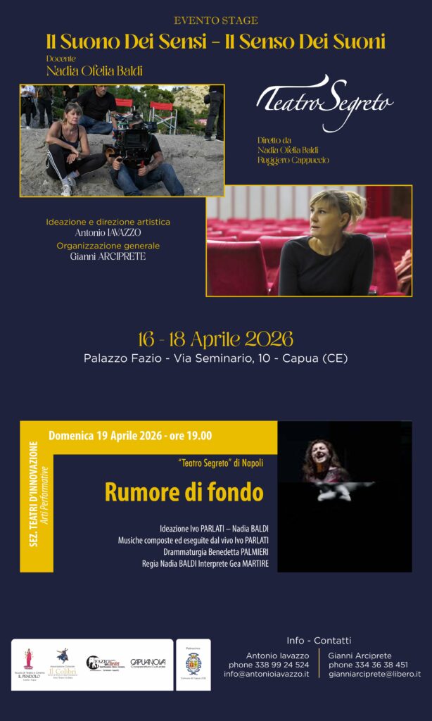Capua (Caserta) – Questo Stage straordinario sarà condotto da Nadia Ofelia Baldi ed è a cura di Teatro Segreto di Salerno, diretto dalla stessa Nadia Ofelia Baldi e da Ruggero Cappuccio.